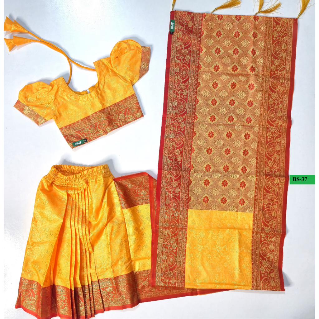 BS-37 বেবি রেডি (হলুদ) কাতান শাড়ি